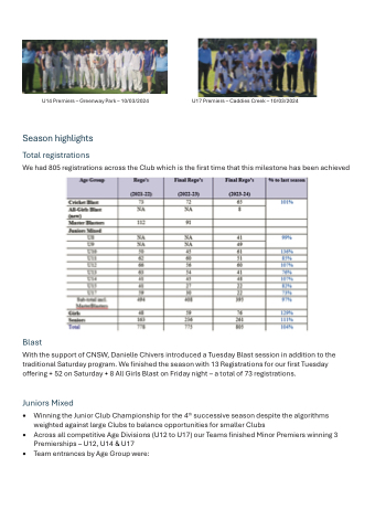 • Winning the Junior Club Championship for the 4th successive season despite the algorithms weighted against large Clubs to balance opportunities for smaller Clubs