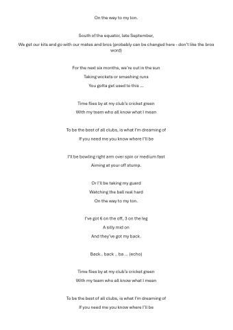 Time flies by at my club’s cricket green With my team who all know what I mean