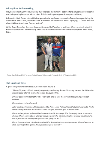 Photo: Cam McBrien & Rick Turner on Rick's A1 debut Vs Berowra @ Parklands Oval- 30th September 2023