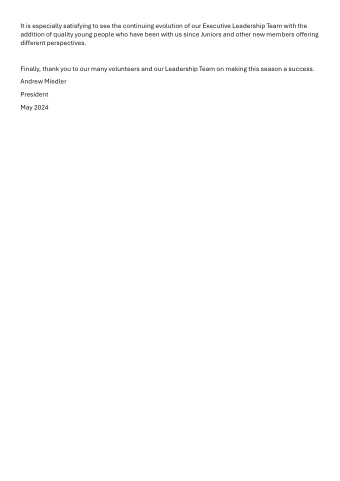 Finally, thank you to our many volunteers and our Leadership Team on making this season a success. Andrew Miedler