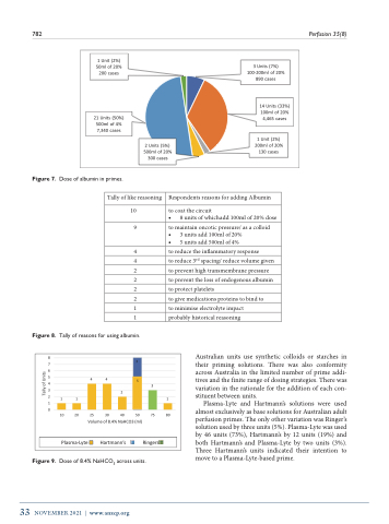 Australian units use synthetic colloids or starches in their priming solutions. There was also conformity across Australia in the limited number of prime addi- tives and the finite range of dosing strategies. There was variation in the rationale for the addition of each con- stituent between units.
