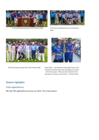 Trisha Yadav – Lisa Sthalekar Trophy (Best Senior Girls Cricketer) with dad, Kapil, after averaging an amazing 272 for the season. Trisha was also selected in the Australian U14 Indoor Cricket Team – 15 March 2025.
