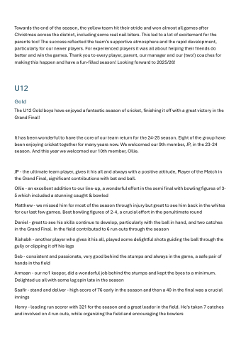 The U12 Gold boys have enjoyed a fantastic season of cricket, finishing it off with a great victory in the Grand Final!