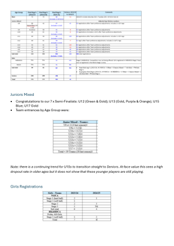 Note: there is a continuing trend for U15s to transition straight to Seniors. At face value this sees a high dropout rate in older ages but it does not show that these younger players are still playing.
