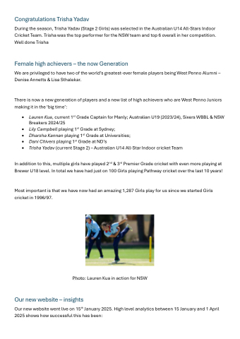 Most important is that we have now had an amazing 1,287 Girls play for us since we started Girls cricket in 1996/97.