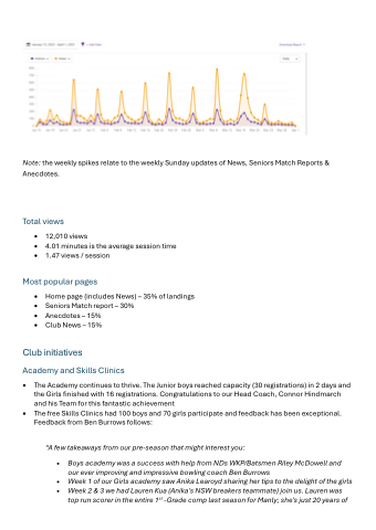 Note: the weekly spikes relate to the weekly Sunday updates of News, Seniors Match Reports & Anecdotes.