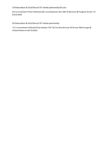 D2 Association & Club Record 10th wicket partnership