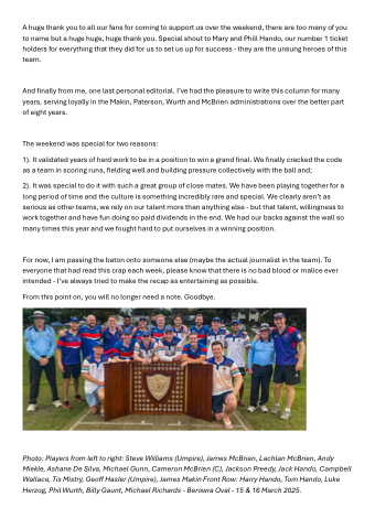 1). It validated years of hard work to be in a position to win a grand final. We finally cracked the code as a team in scoring runs, fielding well and building pressure collectively with the ball and;