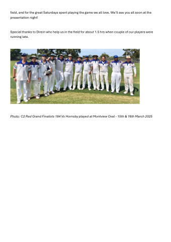 Photo: C2 Red Grand Finalists 184 Vs Hornsby played at Montview Oval - 15th & 16th March 2025