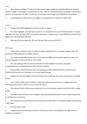 • Thanks also to Ramil De Silva who has developed a Club Dashboard sourcing data from PlayHQ and this will form the basis on our next stage Strategy