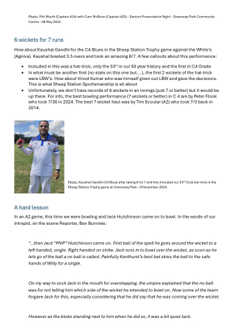 • Included in this was a hat-trick, only the 53rd in our 93 year history and the first in C4 Grade
