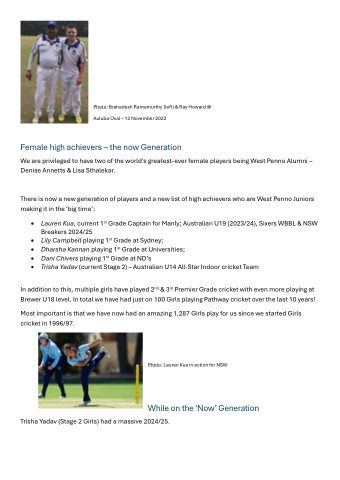 We are privileged to have two of the world’s greatest-ever female players being West Penno Alumni – Denise Annetts & Lisa Sthalekar.