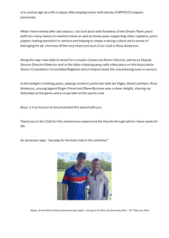 Thank you to the Club for this momentous award and the friends through which I have made for life.