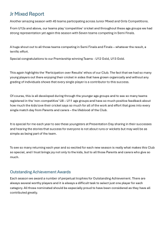 It is special for me each year to see these youngsters at Presentation Day sharing in their successes and hearing the stories that success for everyone is not about runs or wickets but may well be as simple as being part of the team.