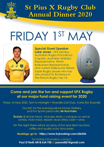 St Pius X Rugby Club Annual Dinner 2020