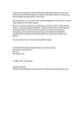 Com.It.Es. SA maps these tides. Like the 614 South Australians counted in the 2021 Census with both heritages, we stand in that space between: living proof – blood mingled through violence and revival.