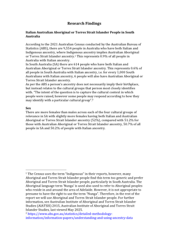 Italian Australian Aboriginal or Torres Strait Islander People in South Australia