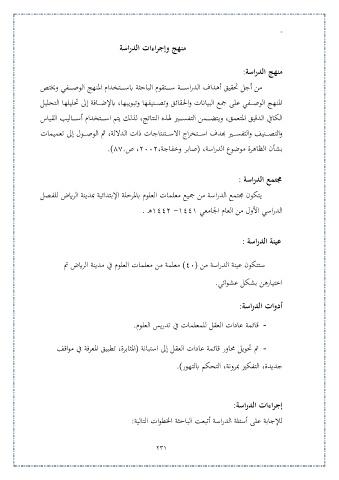 ستتكون عينة الدراسة من ( )40معلمة من معلمات العلوم في مدينة الرياض تم
