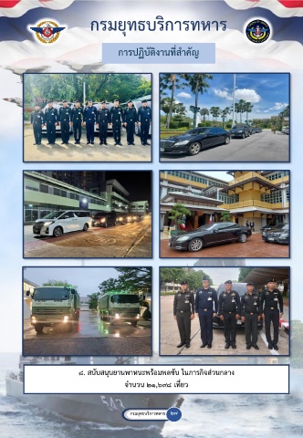 กรมยุทธบริการทหาร การปฏิบัติงานที่ส าคัญ ๘. สนับสนุนยานพาหนะพร้อมพลขับ ในภารกิจส่วนกลาง จ านวน ๒๑,๖๙๘ เที่ยว กรมยุทธบริการทหาร ๒๗