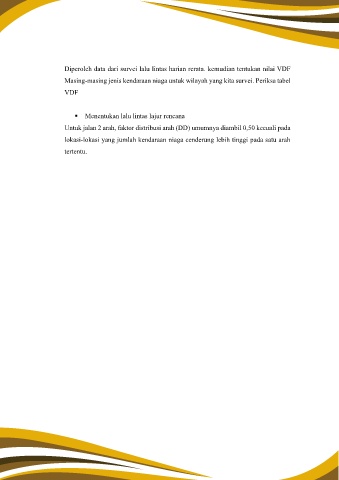 Diperoleh data dari survei lalu lintas harian rerata. kemudian tentukan nilai VDF