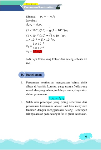 Page 6 - Persamaan Kontinuitas | Fluida Dinamis (Tadris Fisika-Fakultas Tarbiyah dan Keguruan-UIN Antasari Banjarmasin)