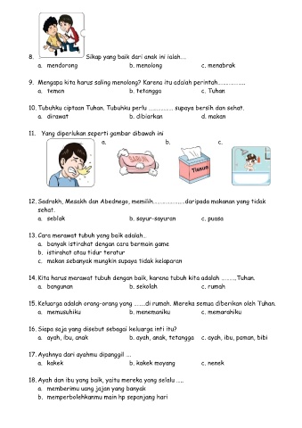 10. Tubuhku ciptaan Tuhan. Tubuhku perlu ……………… supaya bersih dan sehat.