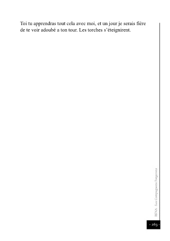 Toi tu apprendras tout cela avec moi, et un jour je serais fière de te voir adoubé a ton tour. Les torches s’éteignirent. RENA - Les Compagnons Forgerons - 263 -