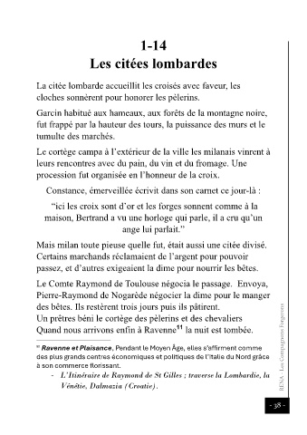 - L’Itinéraire de Raymond de St Gilles ; traverse la Lombardie, la