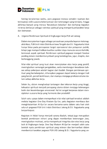 A. Urgensi Pembinaan Spiritual di lingkungan kerja PLN wil Jateng