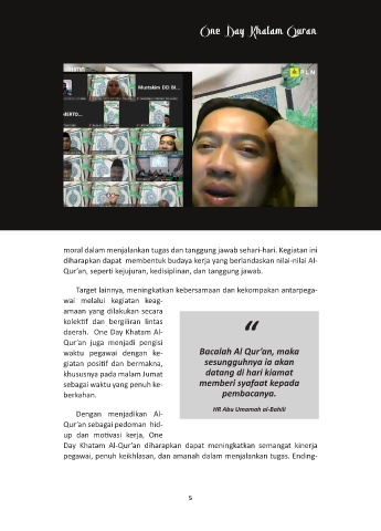 moral dalam menjalankan tugas dan tanggung jawab sehari-hari. Kegiatan ini