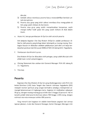 e. Acara inti, berupa pembacaan Al-Qur’an oleh seluruh peserta