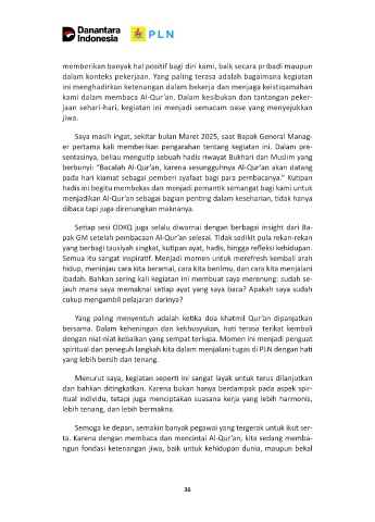 spiritual dan peneguh langkah kita dalam menjalani tugas di PLN dengan hati