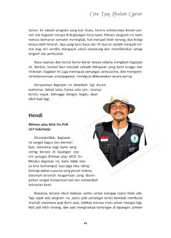 mushaf, membaca ayat demi ayat, bahkan merasa rindu untuk mengaji lagi.