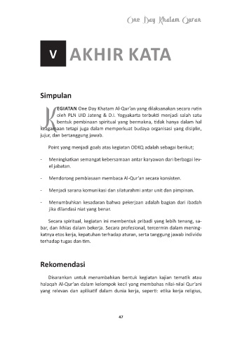Point yang menjadi goals atas kegiatan ODKQ adalah sebagai berikut;