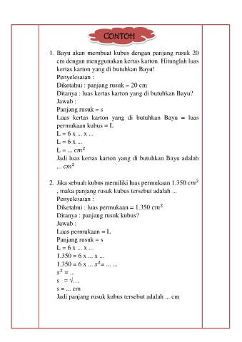 2. Jika sebuah kubus memiliki luas permukaan 1.350