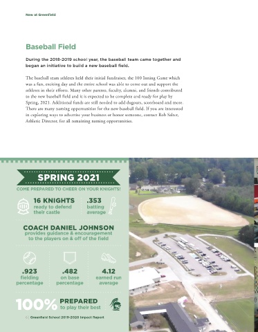 Spring, 2021. Additional funds are still needed to add dugouts, scoreboard and more.