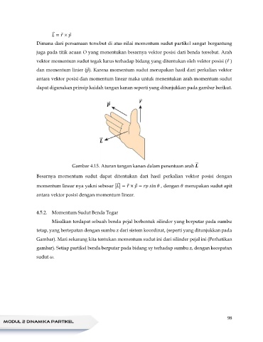 antara vektor posisi dan momentum linear maka untuk menentukan arah momentum sudut