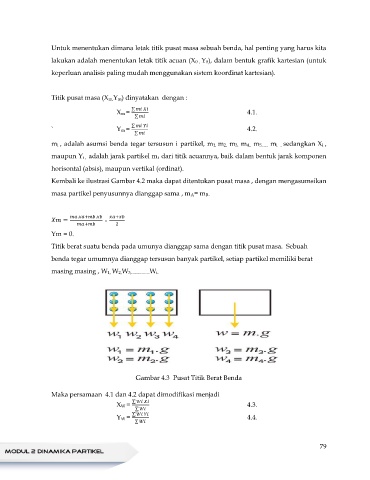 Kembali ke ilustrasi Gambar 4.2 maka dapat ditentukan pusat masa , dengan mengasumsikan
