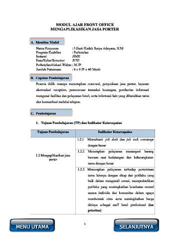 Peserta didik mampu menerapkan reservasi, penyediaan jasa porter, layanan