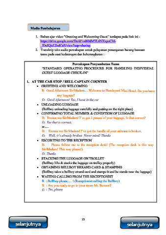 1. Bahan ajar video “Greeting and Welcoming Guest” terdapat pada link ini :