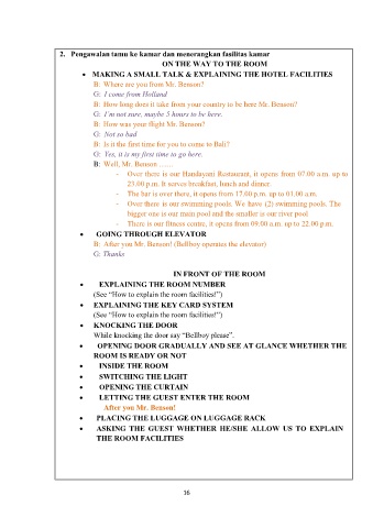 2. Pengawalan tamu ke kamar dan menerangkan fasilitas kamar
