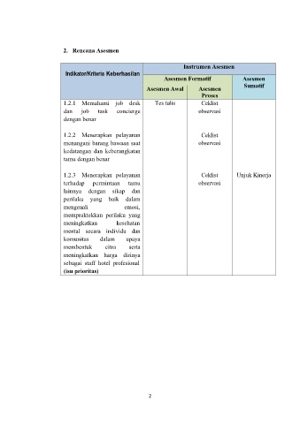 1.2.3 Menerapkan pelayanan Ceklist Unjuk Kinerja