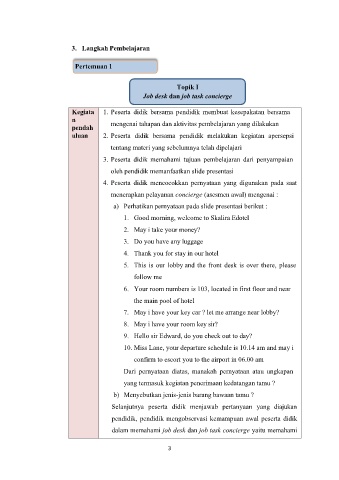 3. Peserta didik memahami tujuan pembelajaran dari penyampaian