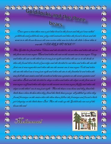 Then Goldie lox found three Chares and she decided to sit on them and when she sat on