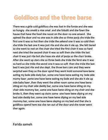 momy baer ,some one have bene eating my bole and she ate it ale up