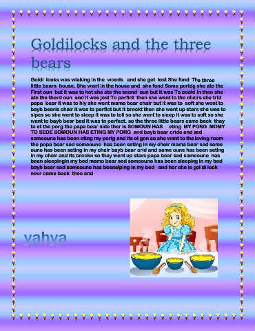bayb bear sed someoune has beenslping in my bed and her she is gol di lock