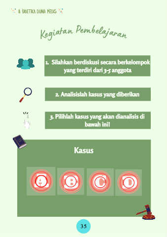 II. BIOETIKA DUNIA MEDIS Kegiatan Pembelajaran 1. Silahkan berdiskusi secara berkelompok yang terdiri dari 3-5 anggota 2. Analisislah kasus yang diberikan 3. Pilihlah kasus yang akan dianalisis di bawah ini! Kasus 35