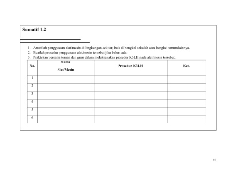 3. Praktekan bersama teman dan guru dalam melaksanakan prosedur K3LH pada alat/mesin tersebut.