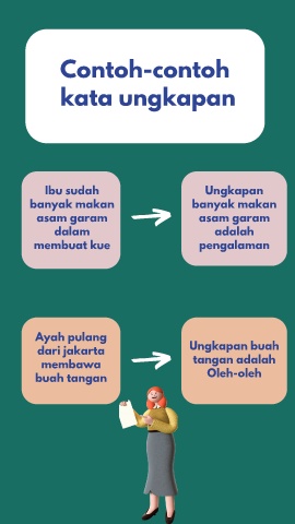 Contoh-contoh kata ungkapan Ibu sudah Ungkapan banyak makan banyak makan asam garam asam garam dalam adalah membuat kue pengalaman Ayah pulang dari jakarta Ungkapan buah membawa tangan adalah buah tangan Oleh-oleh