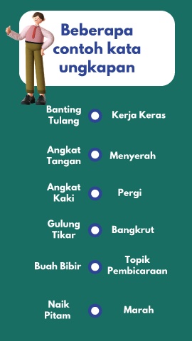 Beberapa contoh kata ungkapan Banting Kerja Keras Tulang Angkat Tangan Menyerah Angkat Pergi Kaki Gulung Tikar Bangkrut Topik Buah Bibir Pembicaraan Naik Marah Pitam